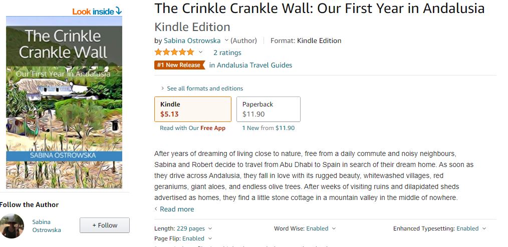 After years of dreaming of living close to nature, free from a daily commute and noisy neighbours, Sabina and Robert decide to travel from Abu Dhabi to Spain in search of their dream home. As soon as they drive across Andalusia, they fall in love with its rugged beauty, whitewashed villages, red geraniums, giant aloes, and endless olive trees. After weeks of visiting ruins and dilapidated sheds advertised as homes, they find a little stone cottage in a mountain valley in the middle of nowhere. Equipped with everything that a romantic soul desires: a patio shaded by grape vines, an ancient bay leaf tree, and a formidable oak in front of a long driveway, they fall in love with this property and decide to reform it into a guest house.